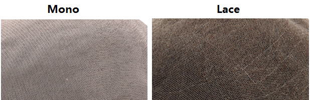 Mono is short for monofilament and it is a mesh base. Monofilament looks like a lace base but much denser and thus stronger. Check out the below picture and you can see the difference.