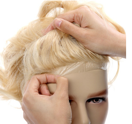 Next step is to secure your hair system onto a mannequin head using bobby pins with the hair system base facing up.