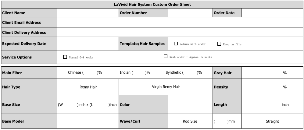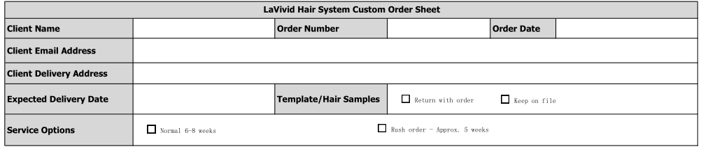 To make it easy for you, here at LaVivid, we have a custom made hair system order form for you to fill.