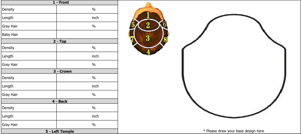 Compared to a stock hair system, a custom made hair system is much more expensive and require longer time to finish. So when you decide to place a custom made hair system order, you will be pretty cautious and diligent when submitting your customization requirements. There are a lot of factors that need to be considered to place a custom made order. Today we are going to talk about how to fill in a custom made hair system order form.