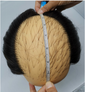 Measure from the front hairline to where your hair loss stops at the back of your head and write down the number.