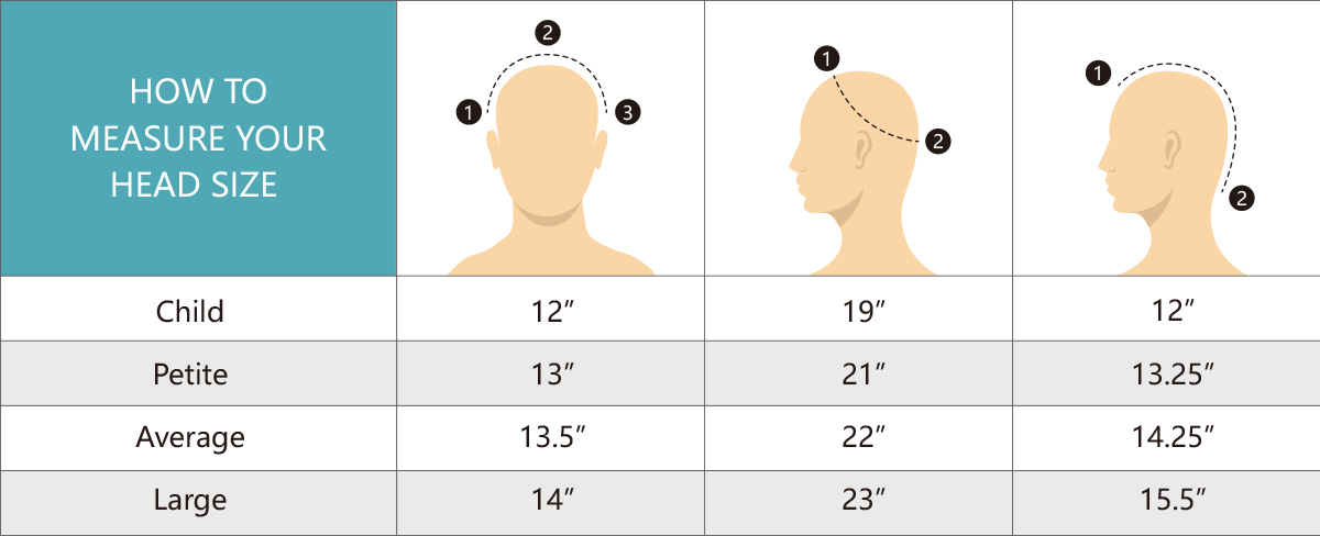 There are 3 sizes you need to measure and they are Ear to Ear, Circumference, and Front to Back. Write down these three measurements and consult the table above. Once you know your size, you can get a general quote with LaVivid for your full cap wig.