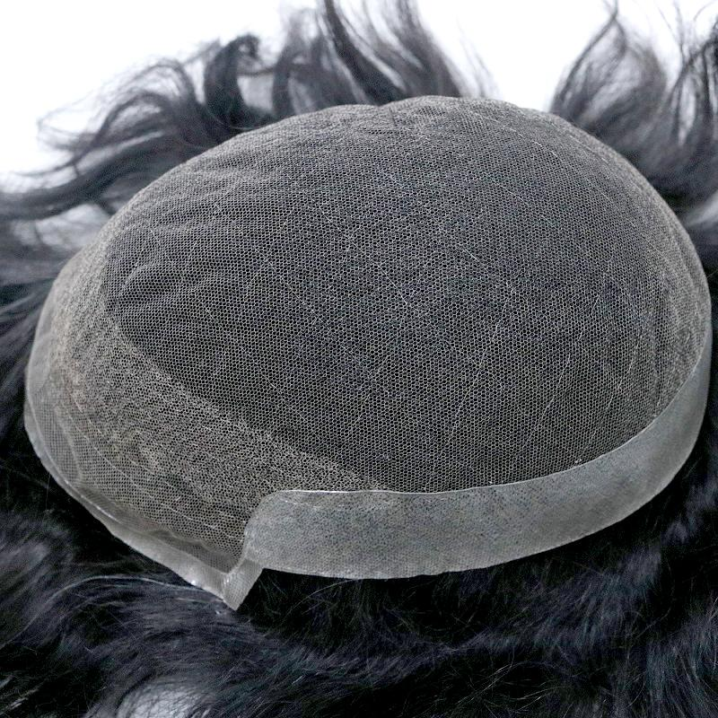 Atlas Men's Real Hair Toupee | Lace in Center with PU Around | Long and Thick Hairstyle for Men
