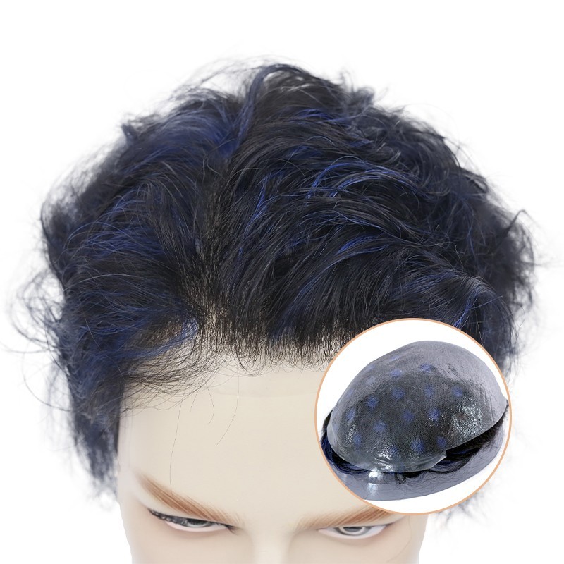 Blue highlighted hair systems are a fun and creative way for men to express their individuality and stand out from the crowd. With the right stylist and maintenance routine, this bold and unique hairstyle can be a great way to add some personality to any look.