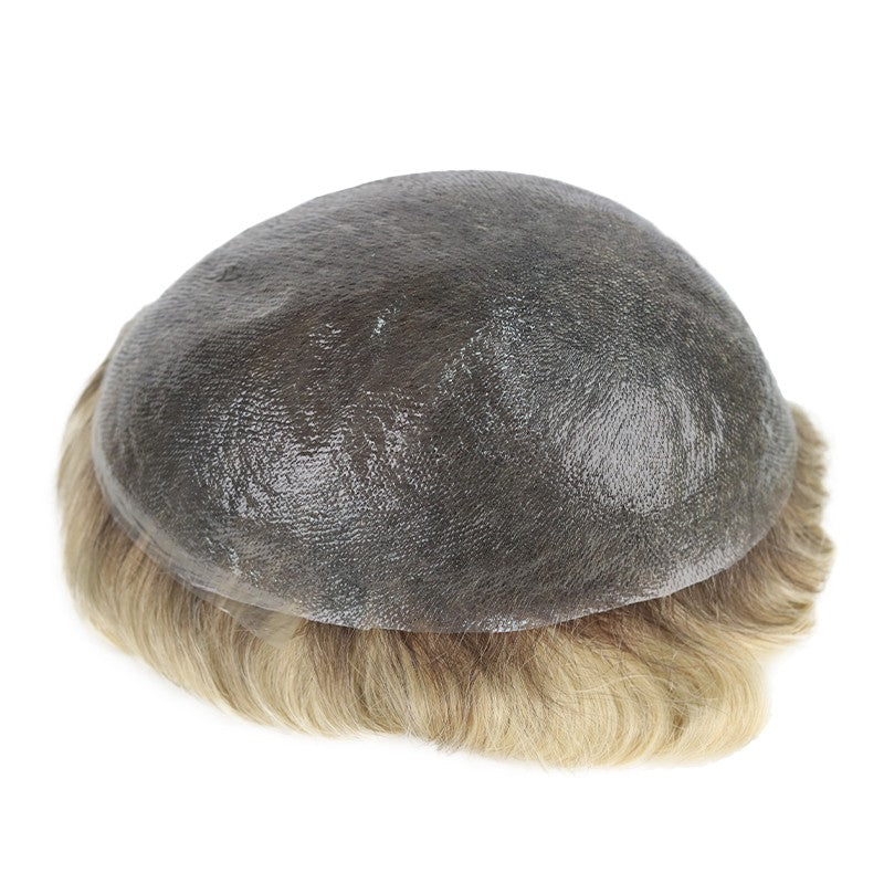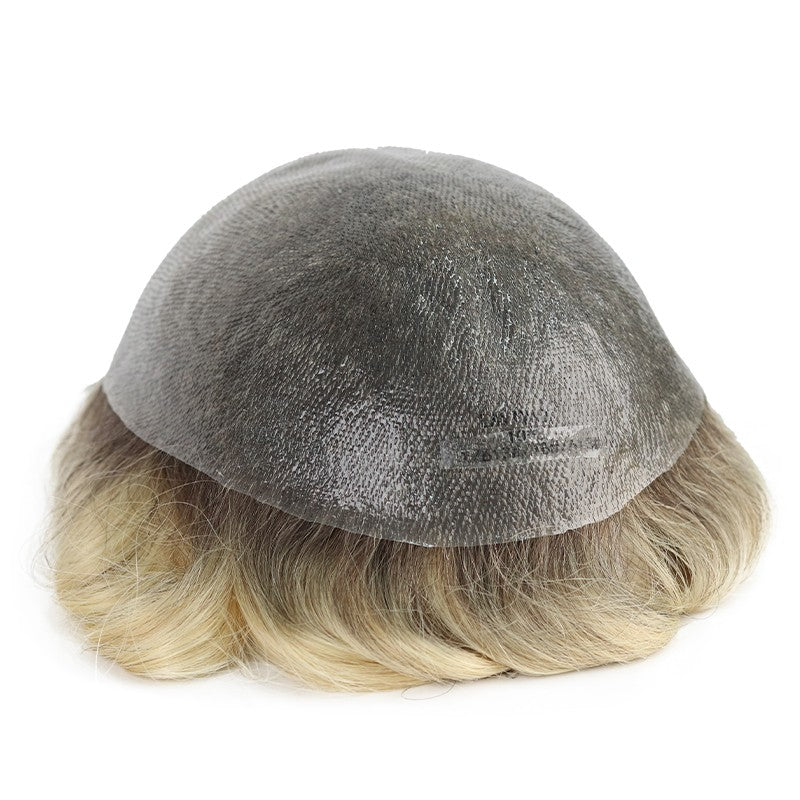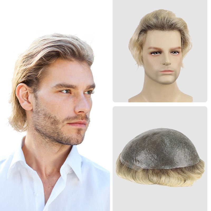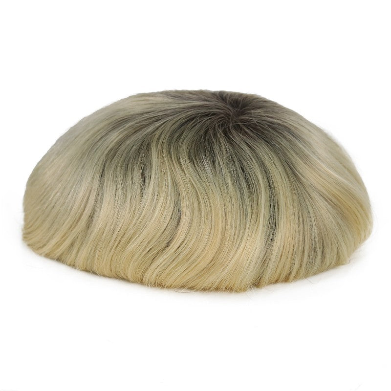 Travis | Dark Rooted Platinum-blonde Hair System | 0.06-0.08mm Single Knotted Full Skin