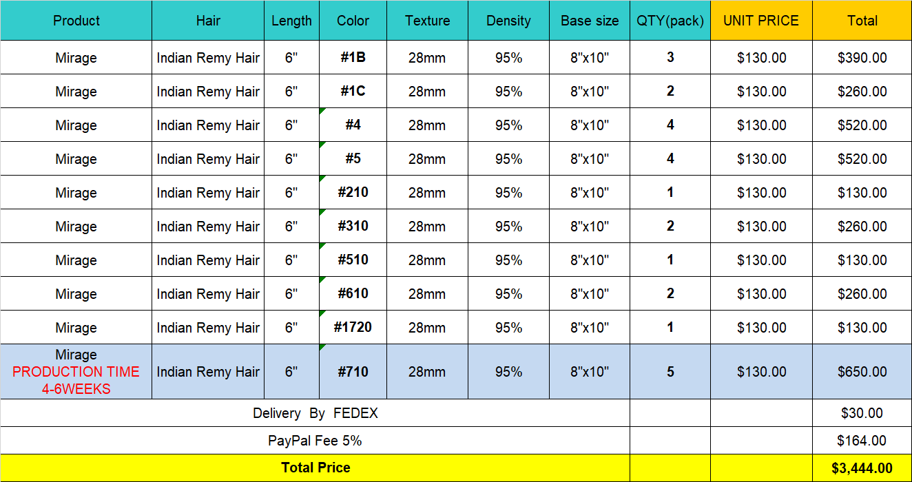 The shipping charge for bulk wholesale orders is $30 for 1 piece, plus $3 for each additional.