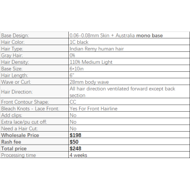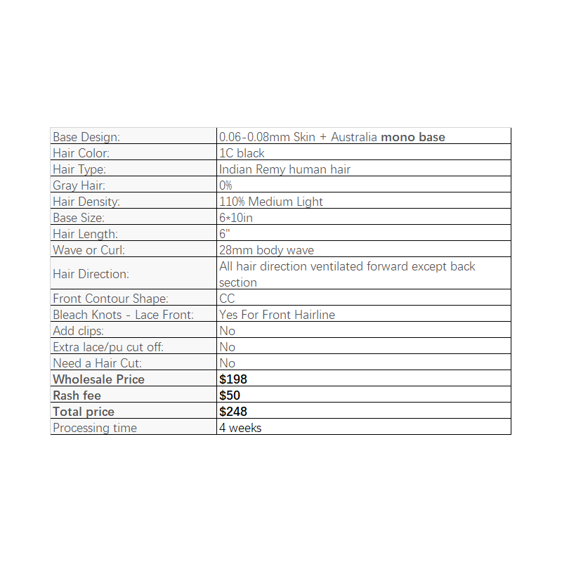 Every hair system comes with a 45-day manufacturing and quality warranty. If there’s an issue with your order or if you're not happy with it, just reach out to us right away. Our