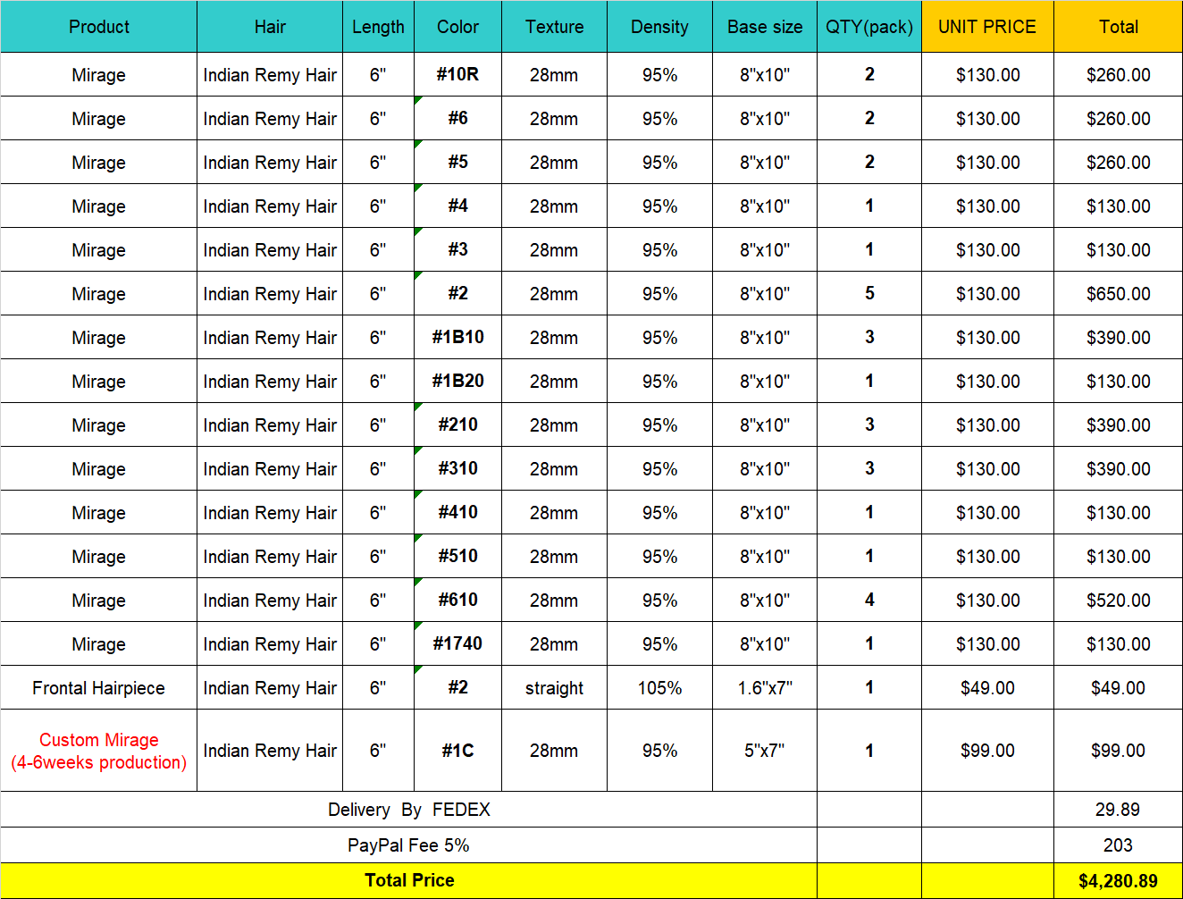 The shipping charge for bulk wholesale orders is $30 for 1 piece, plus $3 for each additional.