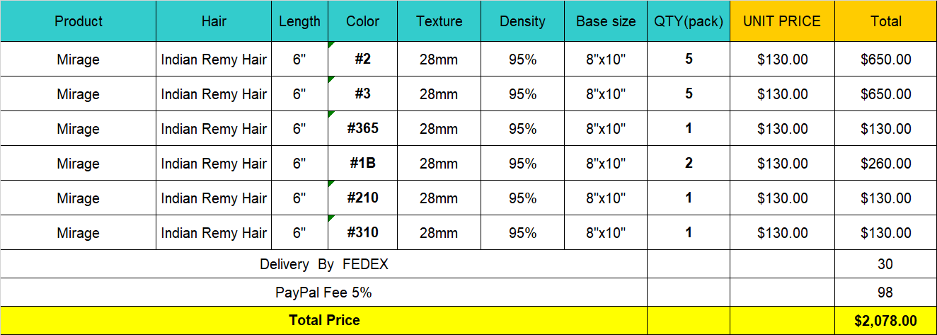 The shipping charge for bulk wholesale orders is $30 for 1 piece, plus $3 for each additional.