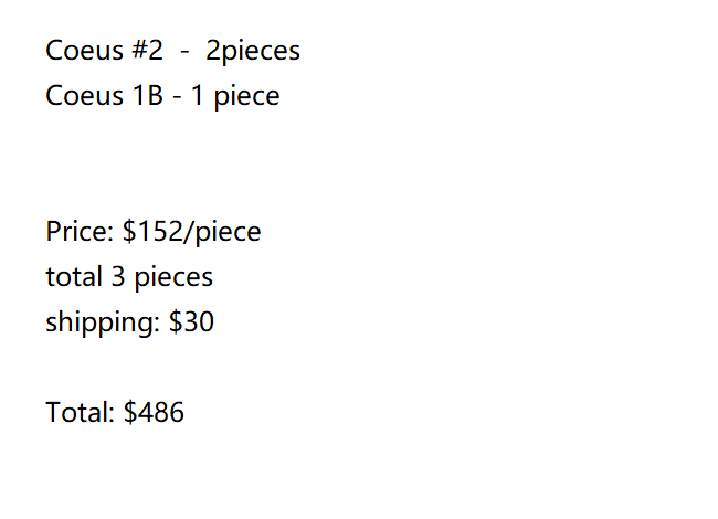 The shipping charge for bulk wholesale orders is $30 for 1 piece, plus $3 for each additional.