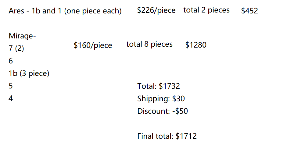 The shipping charge for bulk wholesale orders is $30 for 1 piece, plus $3 for each additional.