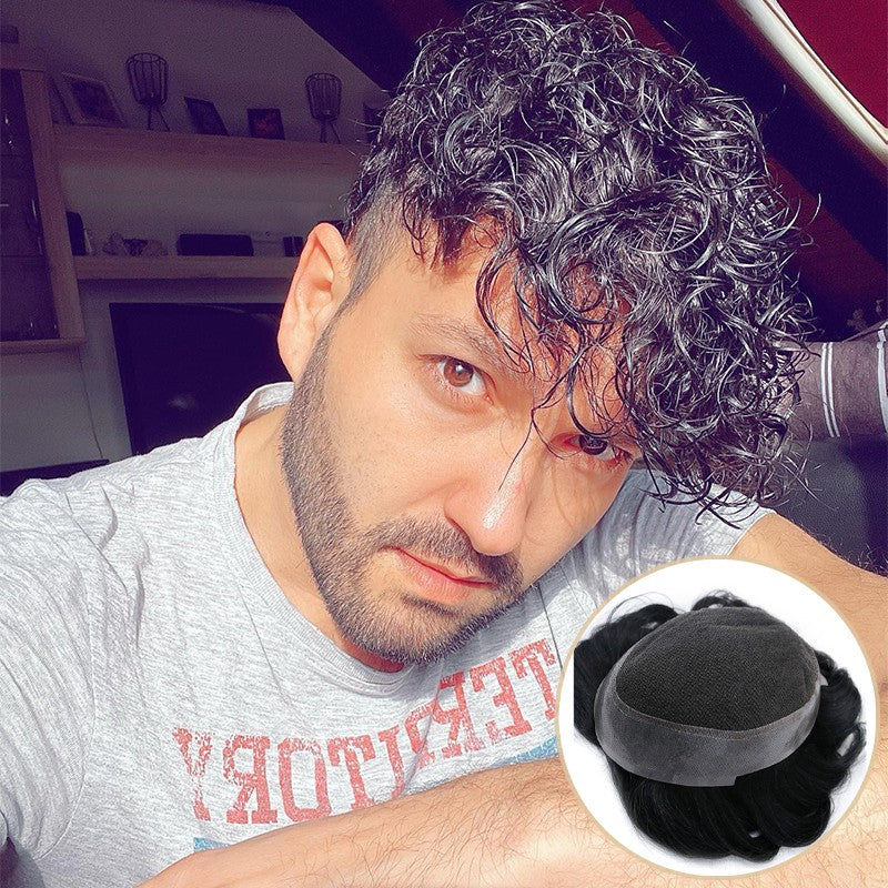 Crius | Men's Half Wig | French Lace in Center with Polyskin All Around | Must Have for Traveling