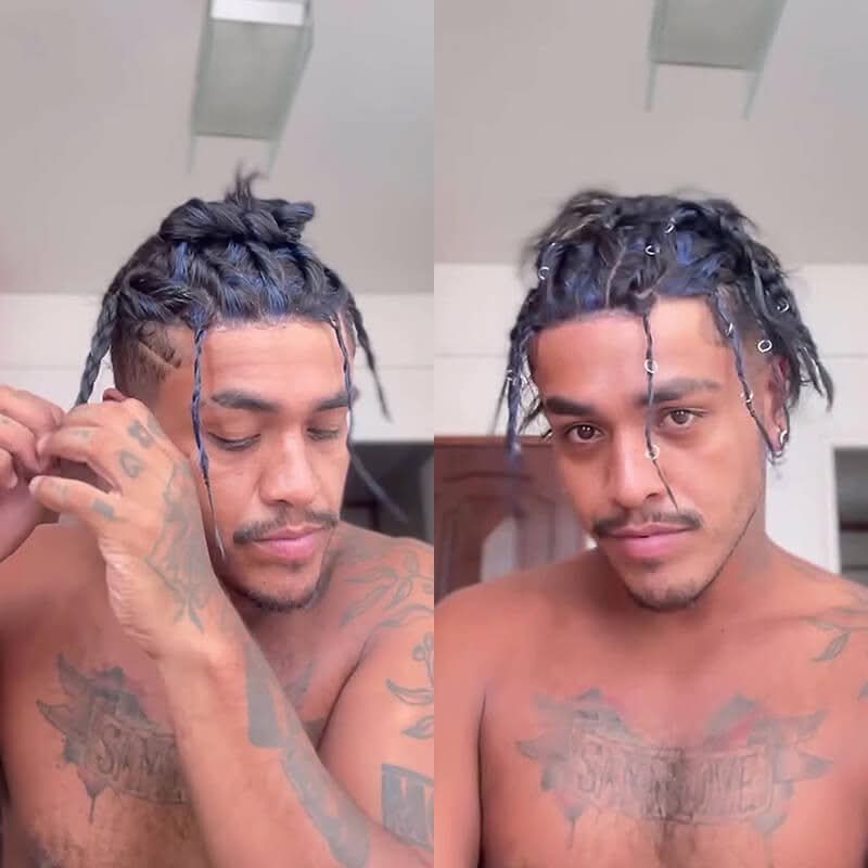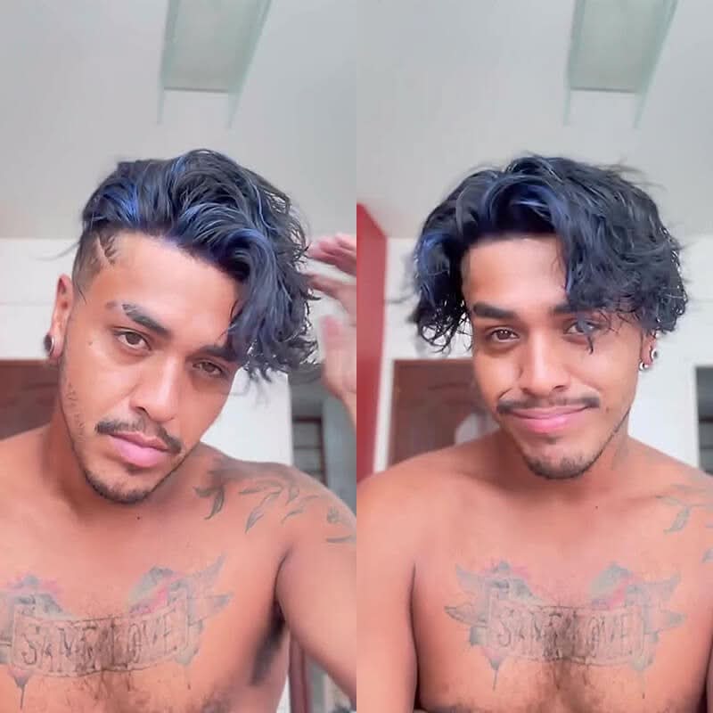 Zayn | Blue Highlighted Hair System | Electric Blue Highlights on Black Hair