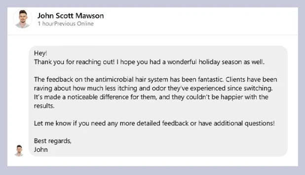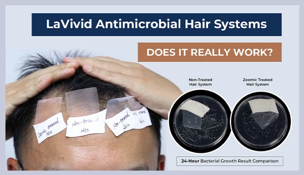 This video showcases the anti-microbial effectiveness of Zeomic® when applied to hair system bases,which may not be visible to the naked eye. Prepare two hair systems: one treated with Zeomic and the other untreated. Allow a bacterial translucent liquid to remain on the hair system base in a warm environment for 24 hours to promote bacterial growth, then compare the results. As depicted in the video, significant bacterial growth is observed on the untreated hair system base, while noticeably less bacterial growth is evident on the Zeomic-treated hair system base within the same time frame.