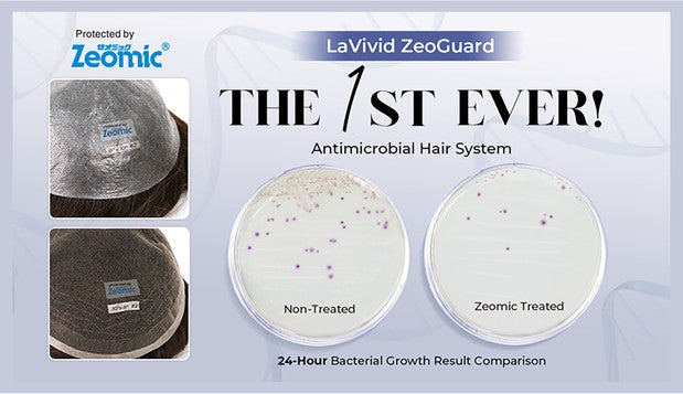 Zeomic isthe world's first silver-based inorganic antimicrobial agentcommercialized by Sinanen Zeomic in 1984. Zeomic has obtained various approvals and licenses to validate its high safety factor,including from the U.S. FDA.We have successfully incorporated Zeomic additives into hair system bases, including skin, lace, mono, and silk. These additives are designed to inhibit the growth of bacteria, mold, and fungi on the hair system base, thereby ensuring a healthy and sanitary wearing environment.