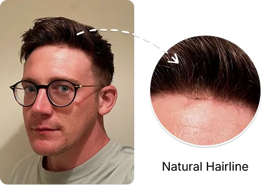 TP1802 Eros: 90% density with ultra-thin skin base, perfect for business or formal settings, offering an invisible hairline effect.