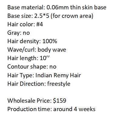 Custom Made Hair Patch for Crown