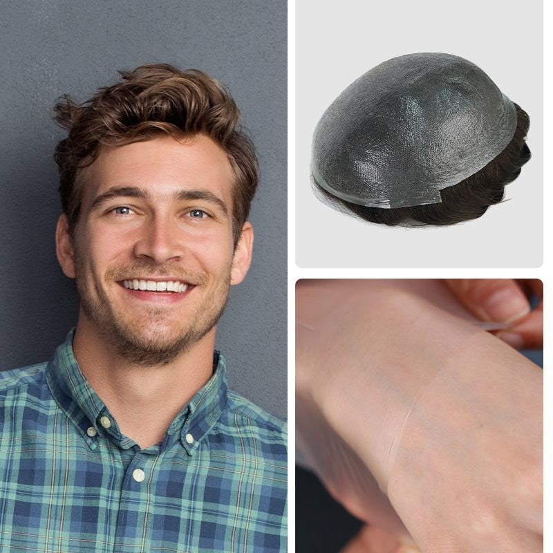 Upgrade Eros | Men’s Hair System with C-through Bio Skin | 0.02-0.03mm | Dull Finish, Transparent, Soft