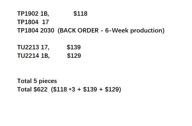 The shipping charge for bulk wholesale orders is $30 for 1 piece, plus $3 for each additional.