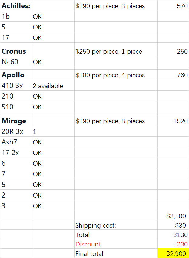 The shipping charge for bulk wholesale orders is $30 for 1 piece, plus $3 for each additional.
