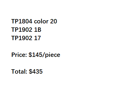 The shipping charge for bulk wholesale orders is $30 for 1 piece, plus $3 for each additional.