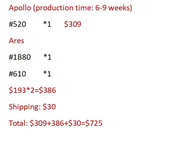 The shipping charge for bulk wholesale orders is $30 for 1 piece, plus $3 for each additional.