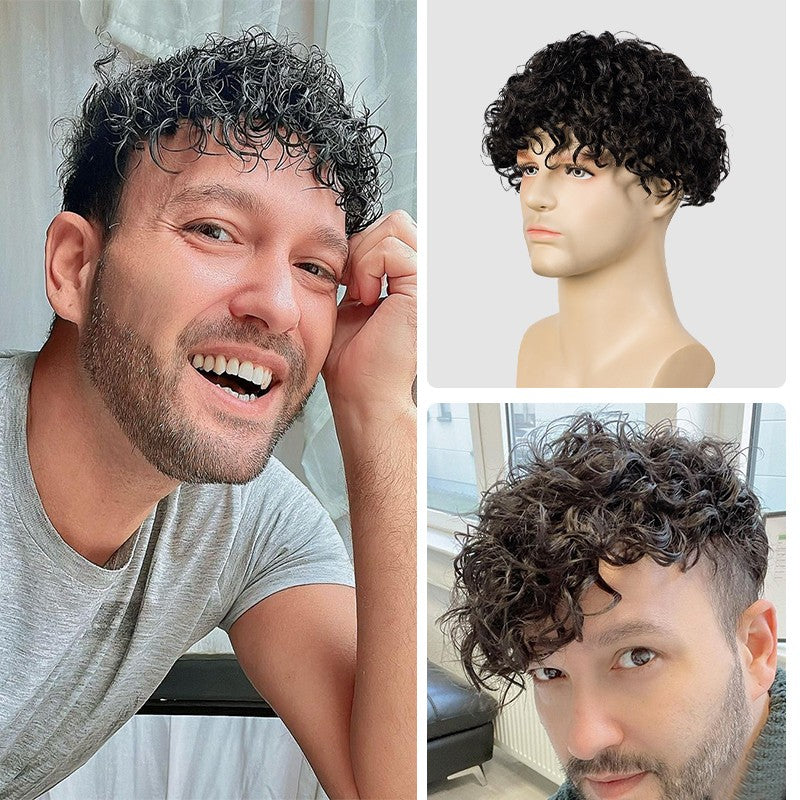 Adam |Men Curly Hair Toupee 20mm Rod Size Curl | High End Hair Look